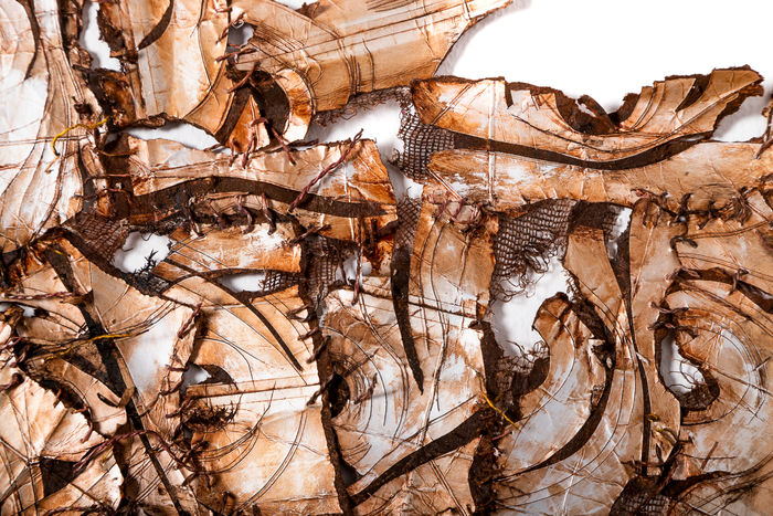 Technique: Mixed media. Tetrapack, printed canvases, textiles.